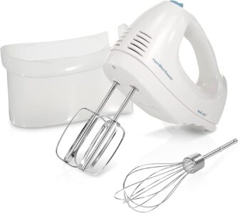 Hamilton Beach 6-Speed Electric Hand Mixer with Whisk, Traditional Beaters, Snap-On Storage Case, White